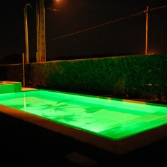 Gracias a la versatilidad del gresite es posible que fondo y paredes se transformen en una original obra de arte y sus luces de Led de colores producen unas hermosas vistas al llegar la noche.